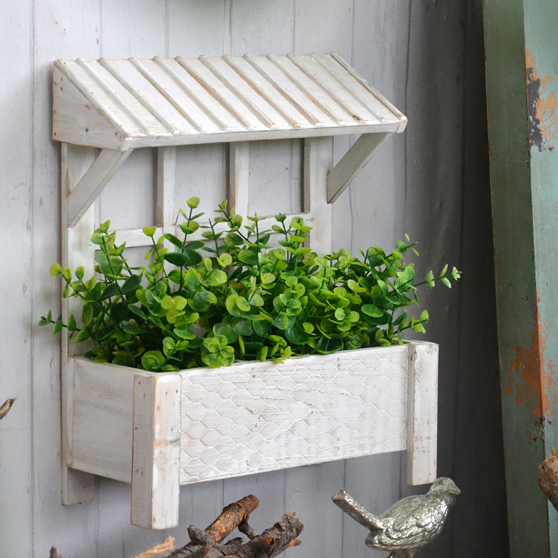3 Compartments Shabby White Wooden Wall Mounted House Shaped Planter Box Aliexpress